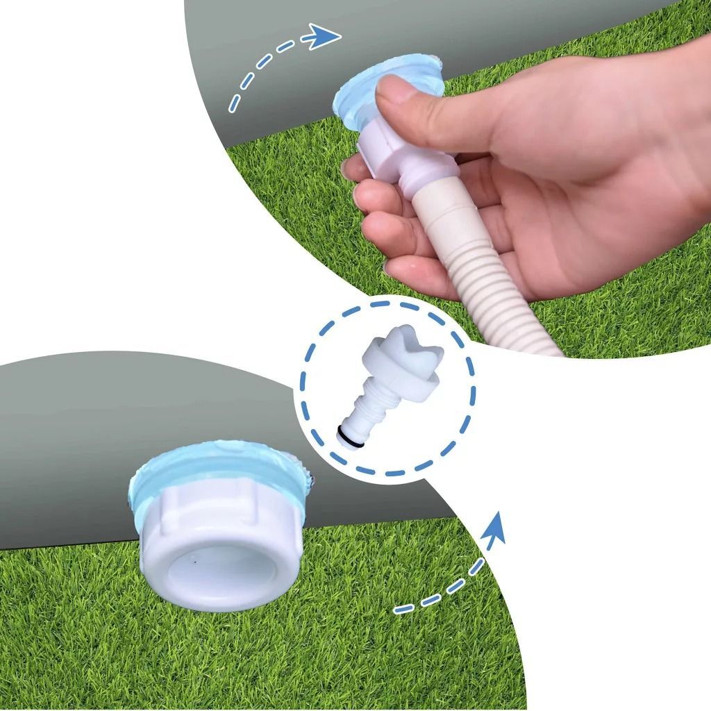 A medence falában található két csatlakozás lehetővé teszi egy szűrőrendszer egyszerű telepítését, amely a vizet a szivattyúhoz irányítja tisztítás céljából, majd visszavezeti a medencébe. A víz könnyen leereszthető az alsó szelep segítségével.